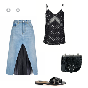 Bárbara MendonçaSaia de ganga, um #MustHave no guarda-roupa! 💙#Skirt#Jeans#OutfitSAIA | TOP | MALA | SANDÁLIAS